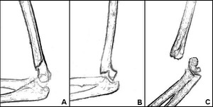 - Traction: disengages the proximal fragment from the brachialis muscle