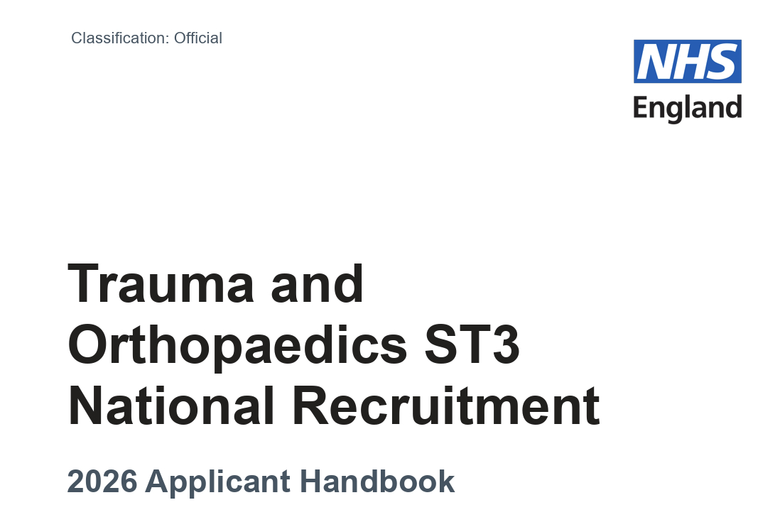 The Trauma & Orthopaedics ST3 National Recruitment 2026 Applicant Handbook is now online.