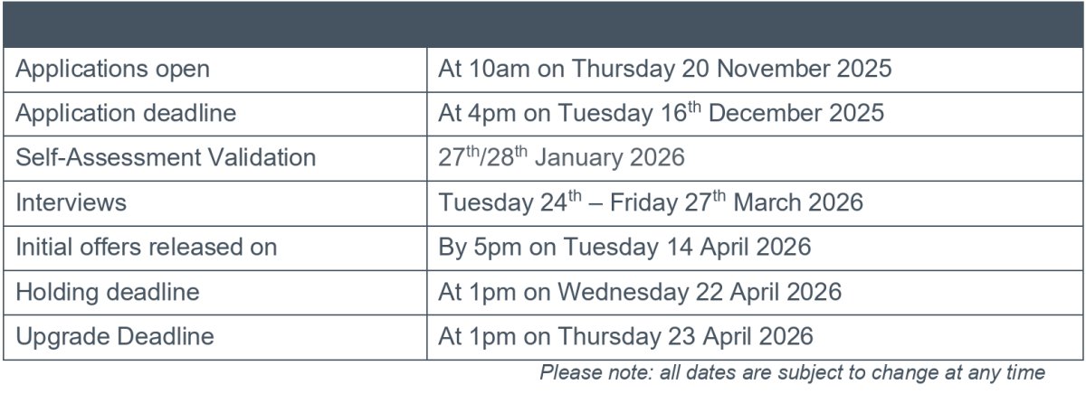 - Interviews will be held 24th-27th March 2026